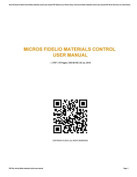 Online PDF MICROS FIDELIO MATERIALS CONTROL USER GUIDE mobipocket Library Genesis
